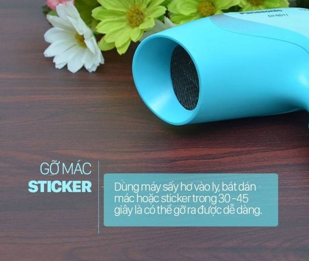 Dùng máy sấy hơ vào ly, bát dán mác hoặc sticker trong 30-45 giây là có thể gỡ một cách dễ dàng.