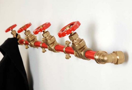 Đây là một ý tưởng khá độc đáo: sử dụng van nước dể làm móc cho giá treo đồ của bạn. Bạn có thể mua những chiếc van này hoặc sử dụng ngay nếu đang có sẵn, sau đó gắn chúng lên một miếng gỗ hay bất cứ cấu trúc nào mà bạn cảm thấy phù hợp để làm giá treo đồ của mình.