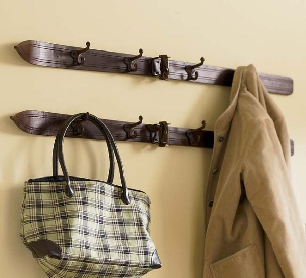 Một chiếc giá treo đồ độc đáo sử dụng ván trượt tuyết cũ, nhìn nó thật sáng tạo khi đặt trong phòng của những đứa trẻ.