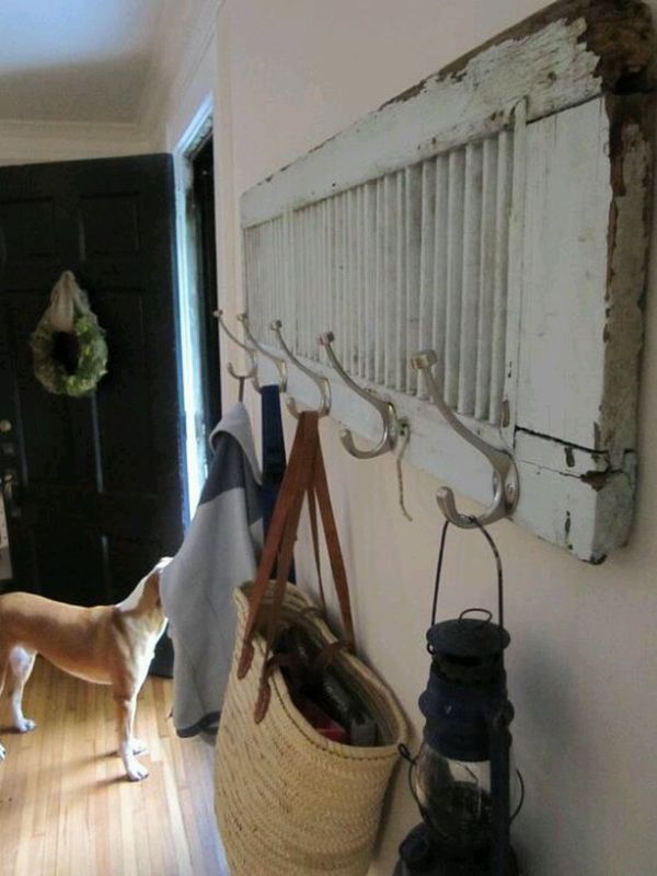 Chiếc giá treo đồ khổng lồ này được làm từ một cánh cửa sổ cũ, sau đó được đặt theo chiều ngang rồi gắn lên tường. Bạn có thể thoái mái gắn thêm rất nhiều móc để treo đồ hoặc là trang trí lại cánh cửa bằng một màu sơn thời trang hơn.