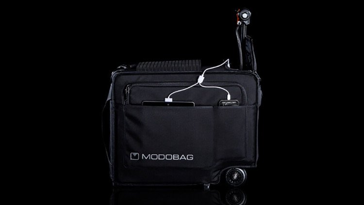 Với motor điện công suất 150W, Modobag có hai chế độ là ngoài trời và trong nhà, ở ngoài thì tốc độ tối đa đạt được là 12,9km/h còn trong nhà là 8km/h. Khối lượng tối đa mà Modobag có thể gánh tải là 117kg, bạn nào to con hơn thì chịu khó đi bộ tiện thể tập thể dục luôn. Modobag chỉ có thể chạy tốt nhất trên nền phẳng, các mặt phẳng khác như gương, gồ ghề thì hãng sáng chế khuyến cáo người dùng nên kéo bằng tay.