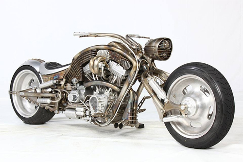 Mẫu xe có tên Cheiron được dựng lên từ động cơ HD S&S Super Stock 110 mã lực. Tác phẩm của hãng độ Italy Stefano & Silvio Bosatta có thiết kế 3D và cắt CNC tạo ra bộ khung chính nhẹ nhưng rất chắc chắn. Gắp sau bằng carbon. Trọng lượng xe 225 kg. |