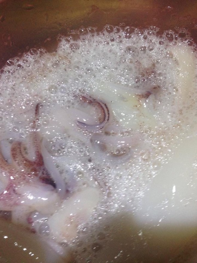 Tan sở, chị Giang ghé chợ Phúc Yên (Vĩnh Phúc) mua 1 kg mực tươi với giá 180.000/kg về đổi món cho cả nhà. Ai ngờ lúc sơ chế mực, càng rửa chị càng thấy nước đục ngàu, sủi bọt.