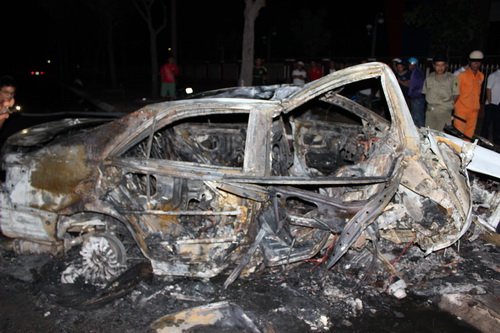 Chiếc ôtô cháy rụi sau tai nạn. |