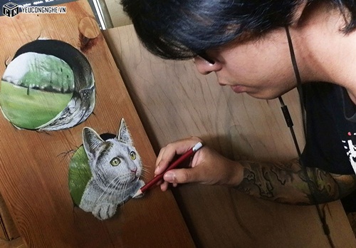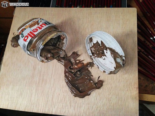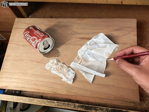 Đây chính là những tác phẩm vô cùng sáng tạo được thực hiện bởi nghệ nhân Ivan Hoo , một nghệ sĩ tài năng. Các tác phẩm của ông đều được thực hiện rất đơn giản trên các bảng nhỏ bằng gỗ với công cụ như phấn màu, bút chì màu và mực in với nhiều màu sắc khác nhau.