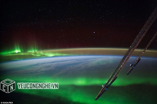 Một phi hành gia trên Trạm Không gian Quốc tế chụp cảnh tượng cực quang ở phía bắc Canada vào tuần trước. Cực quang xuất hiện ở vùng khí quyển gần hai địa cực của trái đất với nhiều hình dạng, màu sắc và chu kỳ khác nhau.