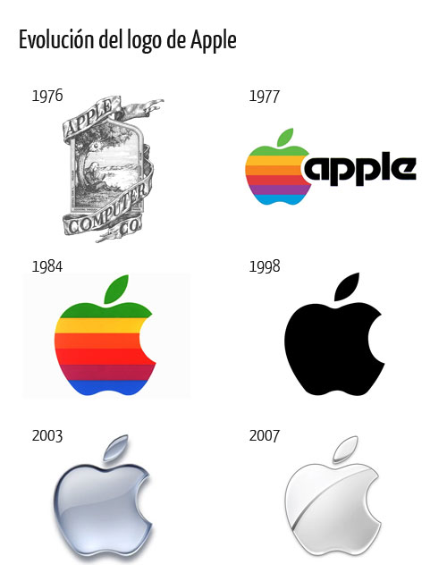 Thiết kế đầu tiên của Apple ra đời ngày 1/4/1976, mô tả cảnh nhà bác học Isaac Newton ngồi đọc sách dưới cây táo. Tuy nhiên, nó nhanh chóng chuyển sang logo đơn giản mô phỏng hình quả táo khuyết. Miếng cắn được thêm vào để mọi người không nhầm quả táo với quả cherry, còn các sọc màu cầu vồng mang tính nhân đạo. Từ năm 1999, logo chuyển sang dùng một màu đơn giản.