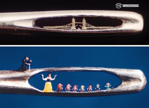 Cây cầu tháp London (Anh) và câu chuyện “Nàng Bạch Tuyết và bảy lùn” được nghệ sĩ “kể” lại trong một khung hình mà người xem buộc phải sử dụng kính hiển vi mới có thể chiêm ngưỡng.