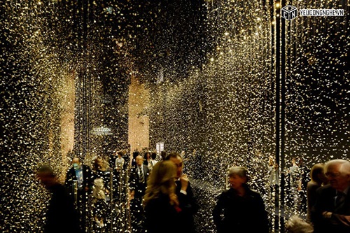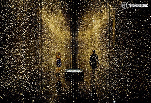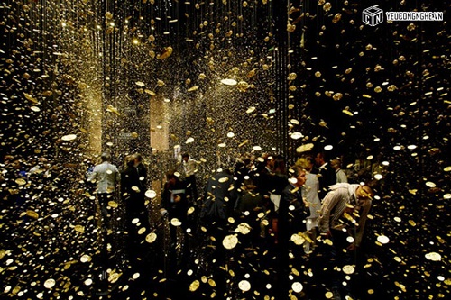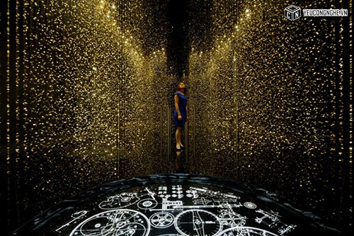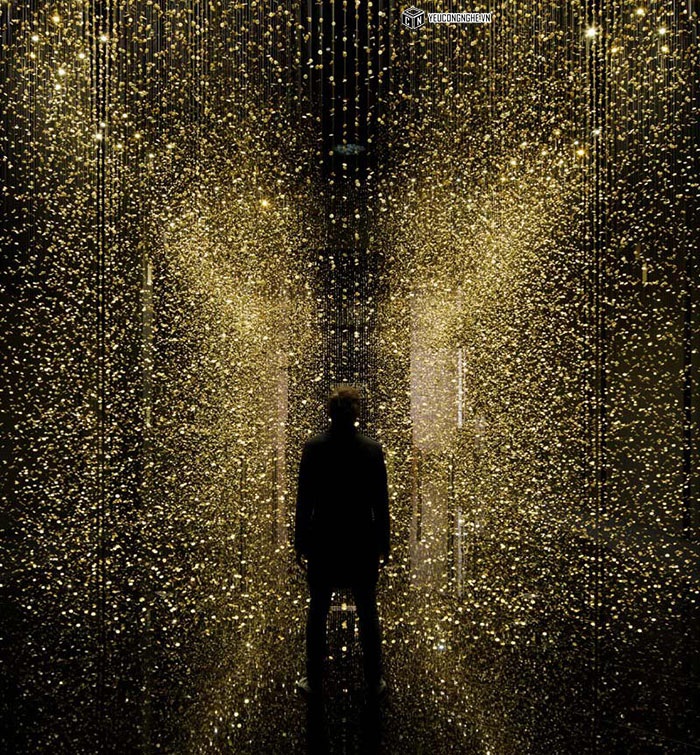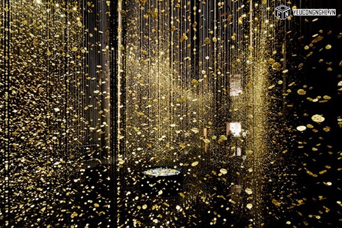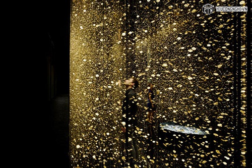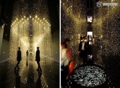 Cài đặt của họ, được gọi là "LIGHT là TIME," có 65.000 baseplates đồng hồ treo trên sợi dây trong một căn phòng màu đen, làm cho chúng lung linh như những giọt mưa vàng.