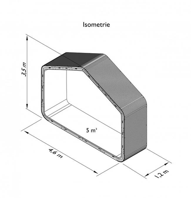 Bộ phận trong ảnh là một khối có chiều dài 1,2 m (47 inch), nặng 500 kg (1.100 pound), các khối sẽ được kết nối với nhau để tạo ra một kiến trúc lớn, mà không cần một nền móng nguyên khối. Thiết kết theo kiểu nhiều phần sẽ cho phép người dùng mở rộng diện tích linh hoạt, dễ dàng tùy biến và lắp ráp.