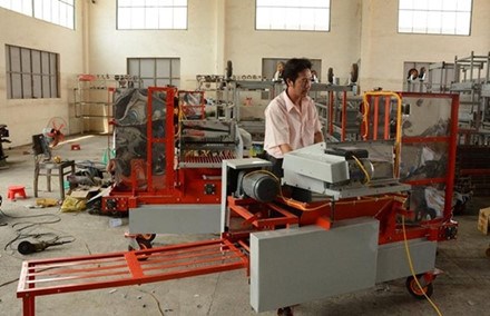 Anh Chương bên xưởng cơ khí được anh đầu tư vốn hàng chục tỷ đồng.