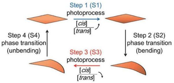 Yoshiyuki Kageyama, Sadamu Takeda và các đồng nghiệp tại Khoa Hóa học, thuộc Đại học Hokkaido ở Nhật Bản đã thành công tạo ra một hợp chất hóa học, hay còn gọi là lắp ráp dạng tinh thể. Theo đó, chúng có thể di chuyển lặp đi lặp lại khi tiếp xúc với ánh sáng xanh.