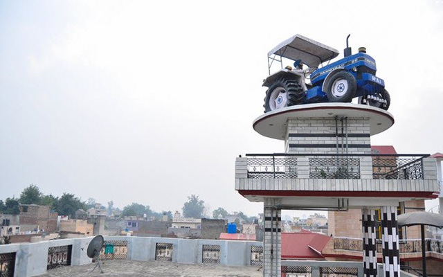 Chủ nhân của ngôi nhà này gây ấn tượng với mô hình chiếc máy kéo kiêm bể chứa nước trên nóc nhà.