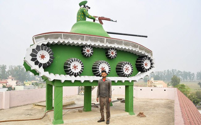 Anh Bahara Singh ở ngôi làng Jandiala quyết định xây bể nước hình một chiếc xe tăng độc đáo.