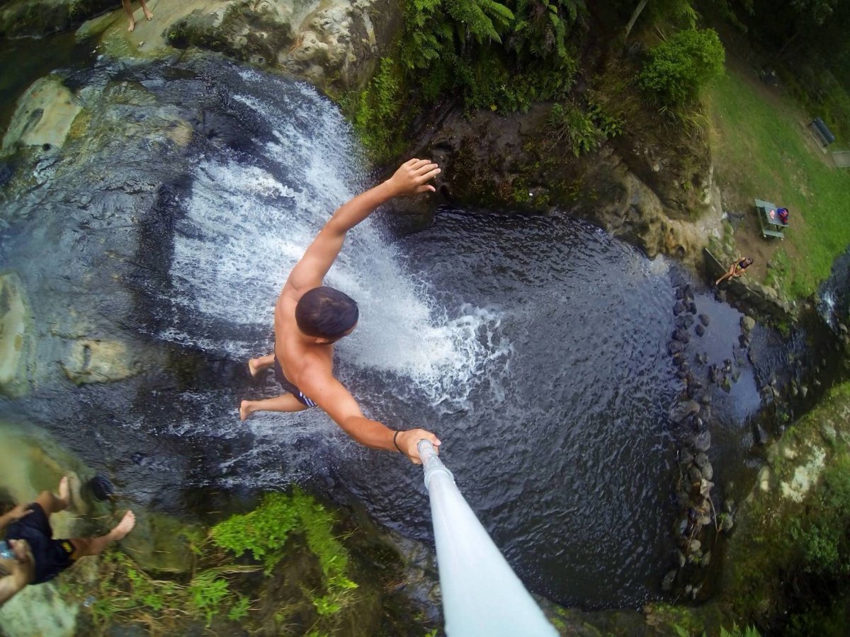 Cầm chiếc GoPro và nhảy xuống nước từ trên mỏm đá cao