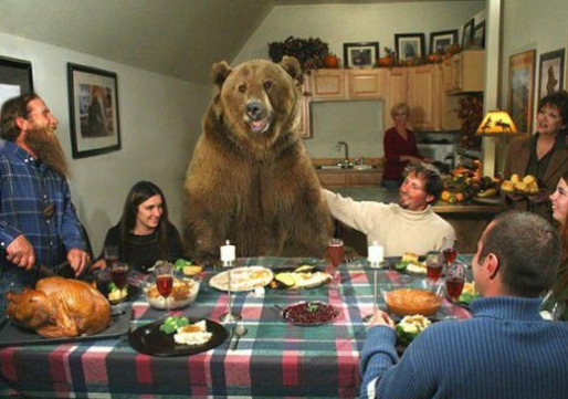 Chú gấu có tên Brutus có thật chứ không phải photoshop, được gia đình nuôi nhốt trong nhà