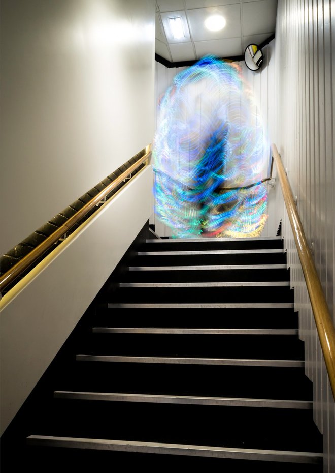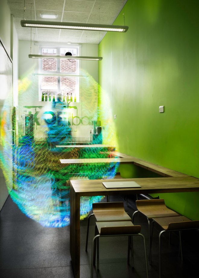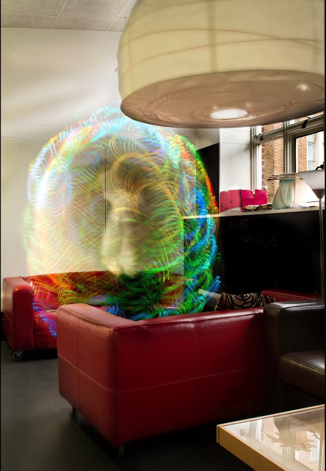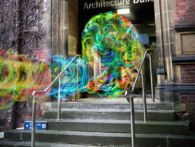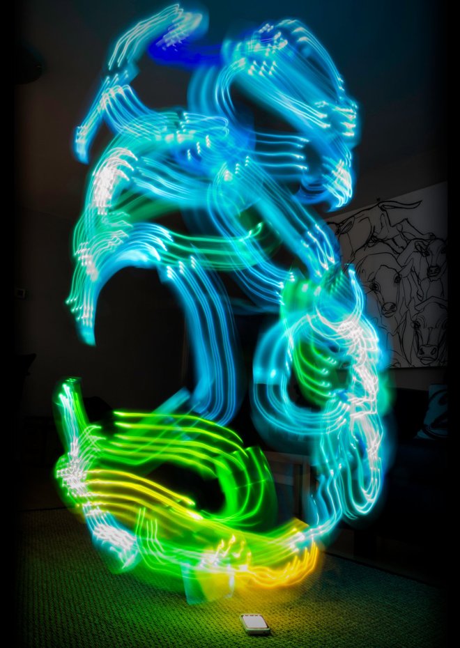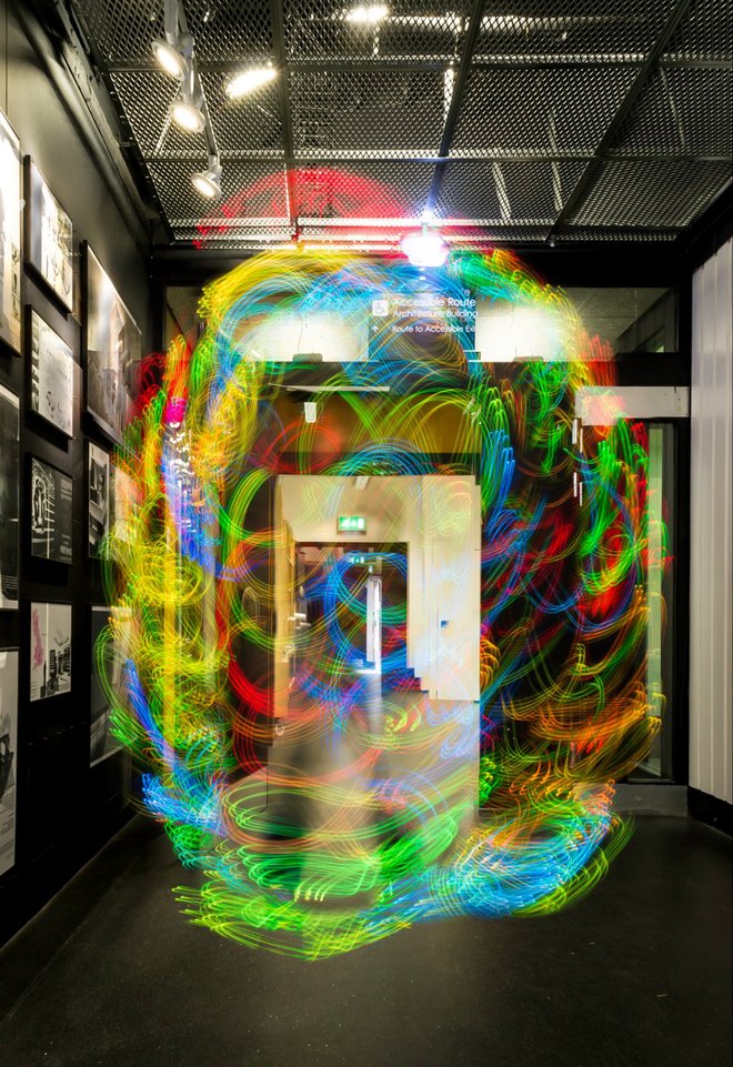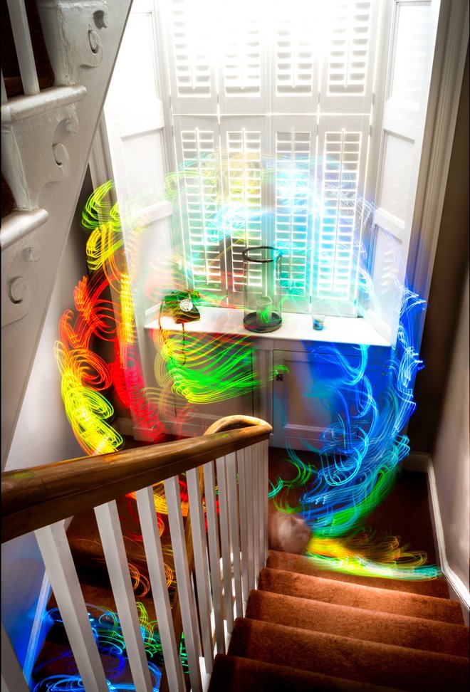 Anh thiết lập một hệ thống có thể đo độ mạnh yếu của sóng Wi-Fi và chuyển chúng thành màu sắc khác nhau rồi chụp lại thông qua kỹ thuật chụp ảnh phơi sáng.