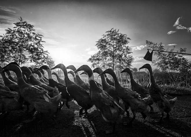 | Một nông dân Indonesia chăn đàn vịt lúc sáng sớm ở Yogyakarta. Ảnh: National Geographic |