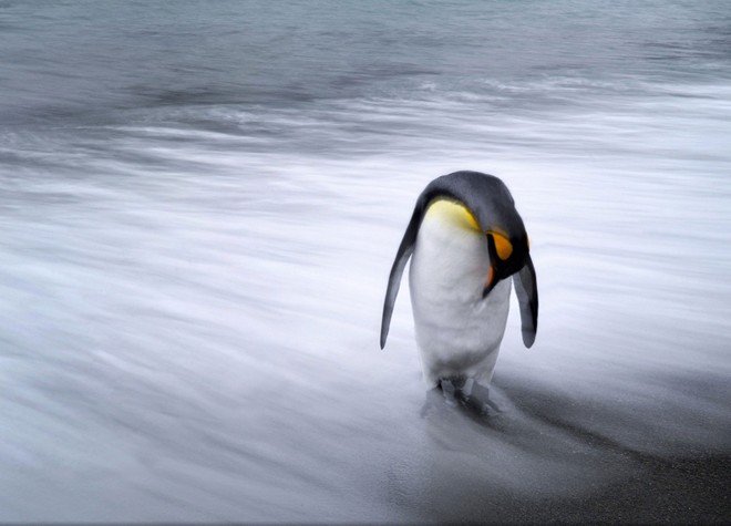 | Con chim cánh cụt đơn độc đứng trên bãi biển đảo Nam Georgia, Nam Thái Bình Dương. Ảnh: National Geographic |