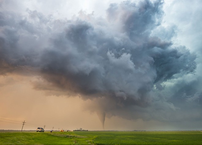 | Trận lốc xoáy có cấp độ EF-4 quét qua khu trang trại gần Rozel, Kansas, Mỹ. Ảnh: National Geographic |