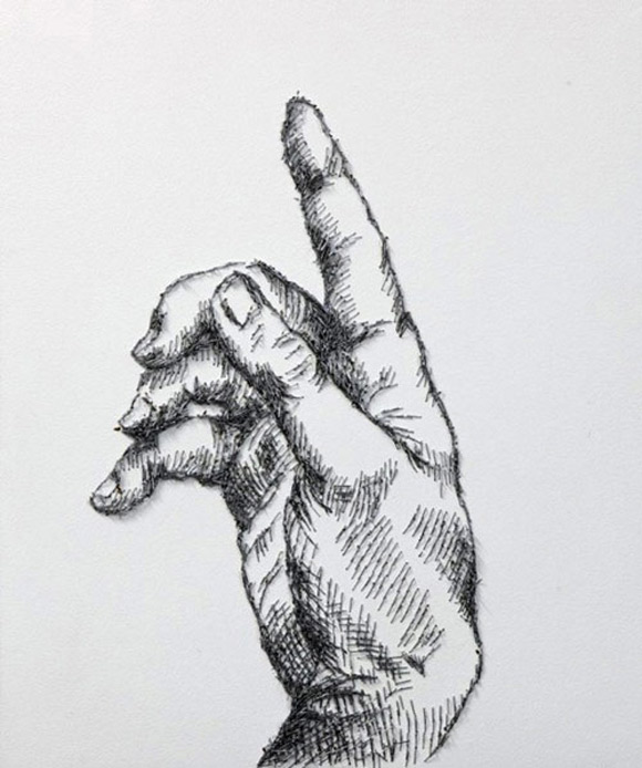 Nghệ sĩ Baptiste Debombourg dùng đinh ghim để tạo thành các tác phẩm pha trộn giữa cổ điển và đương đại. Mỗi bức tranh được kết từ hàng ngàn chiếc đinh ghim và tốn rất nhiều thời gian.