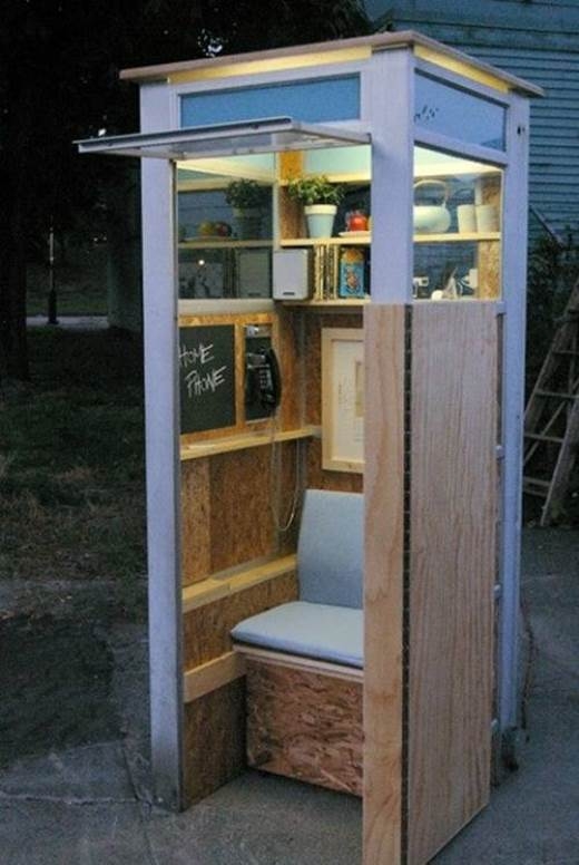 Một buồng điện thoại được biến thành chỗ ở cho người vô gia cư