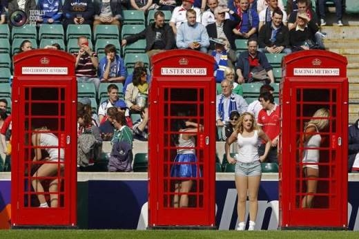 Buồng điện thoại được biến thành phòng thay đồ tại chung kết bóng bầu dục của giải Heineken Cup ở sân vận động Twickenham, London