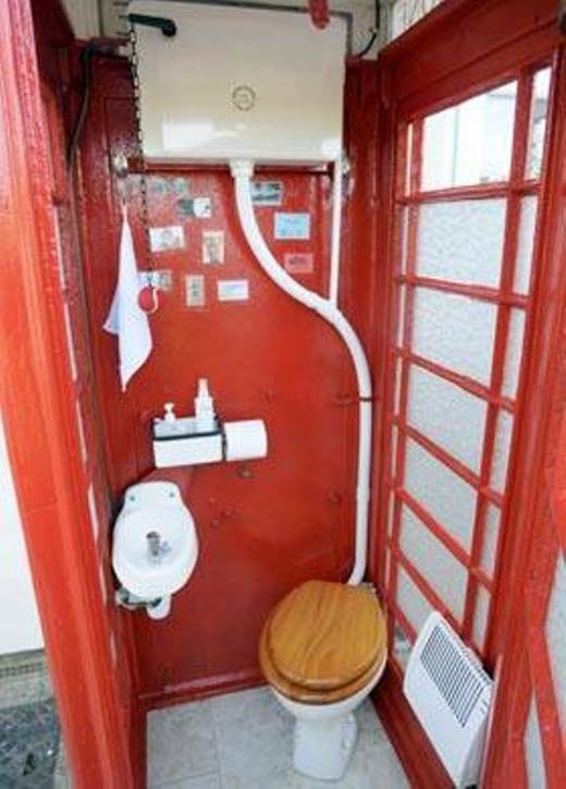 Buồng điện thoại này đã được ông John Long, 73 tuổi, tìm thấy trong sân nhà mới và cải tại thành một buồng vệ sinh tiện nghi với cửa kính mờ.