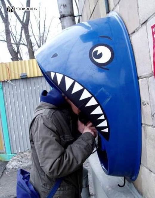 Buồng điện thoại cá mập xanh tại Nga do nghệ sĩ đường phố Renald đến từ Petrozavodsk thực hiện. Tuy nhiên sau đó chúng đã bị các công ty điện thoại sơn lại.
