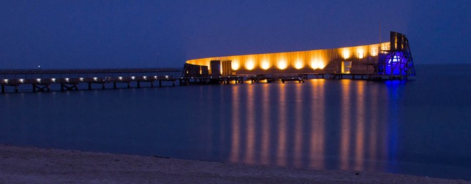 Kastrup Sea Bath, Đan Mạch: Công trình độc đáo này là một phần công viên nước Kastrup Strandpark ở bờ đông Amager, Copenhagen. Kastrup Sea Bath gồm một bể bơi ngoài trời nằm cuối cầu cảng gỗ dài 100 m, vươn ra biển Baltic. Khu bể bơi được tạo hình theo đường xoắn ốc chắn gió, với một cầu nhảy dành cho du khách.