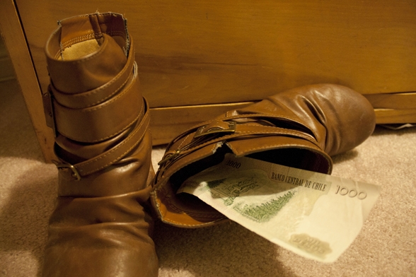 Hay nhét vào bít tất hoặc túi quần áo cũ.