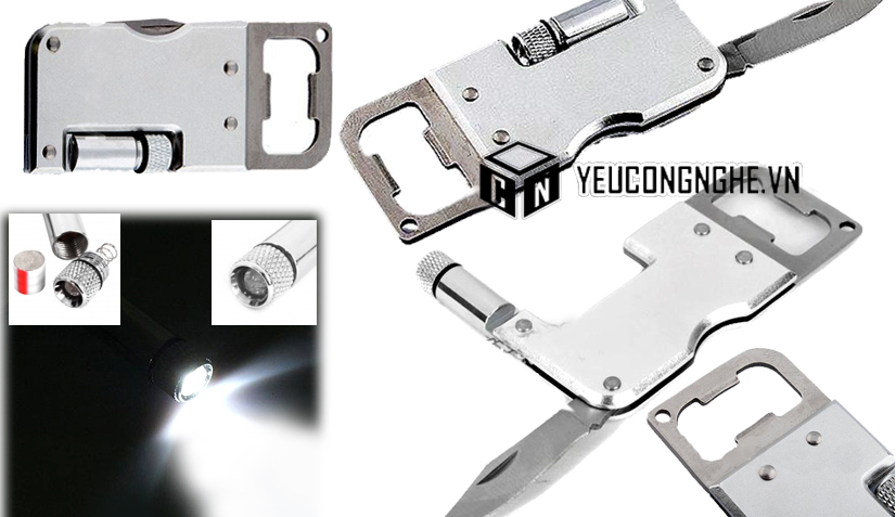 Dụng cụ đa năng đèn pin, khui mở bia, dao rọc giấy, móc khóa