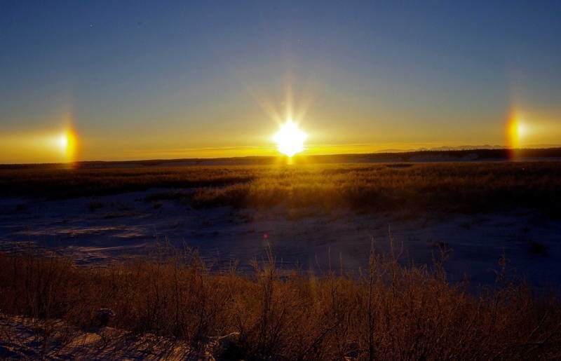 Hiện tượng mặt trời giả thường xuất hiện dưới dạng những vùng ánh sáng nhiều màu sắc ở bên trái hoặc bên phải của mặt trời, cách mặt trời 22 độ và ở cùng độ cao phía trên đường chân trời ngang với mặt trời. Chúng thường được thấy trên một cái vòng hay một vầng hào quang xung quanh mặt trời.