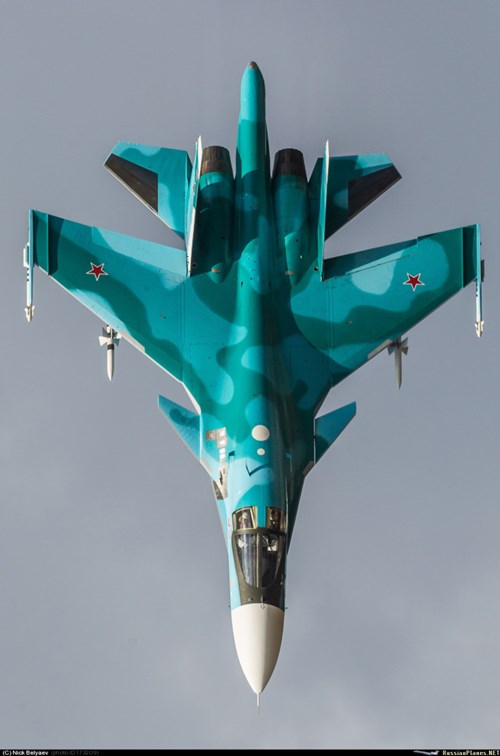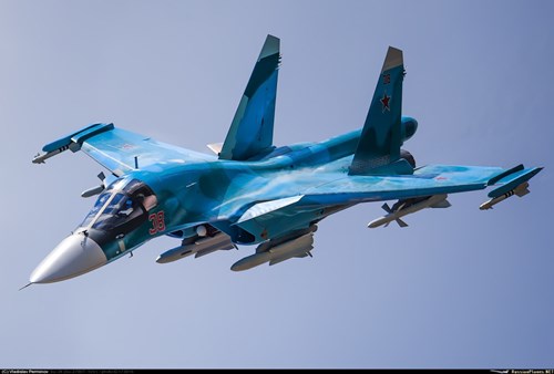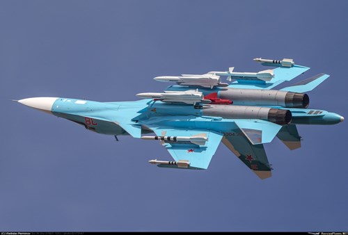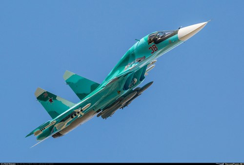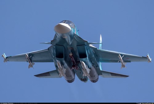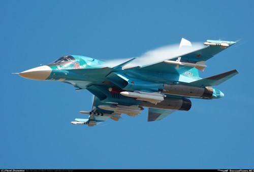 Su-34, dựa trên cơ sở máy bay chiến đấu Su-27 được trang bị động cơ AL-31MF và có thể mang một tải trọng lên đến 8 tấn vũ khí dẫn đường chính xác hơn 2.500 dặm.