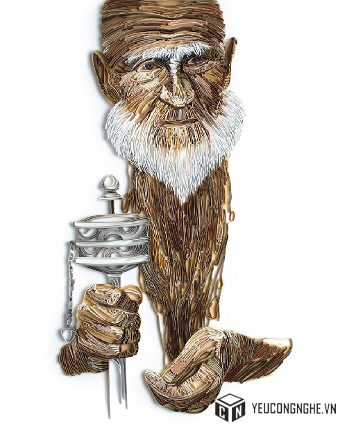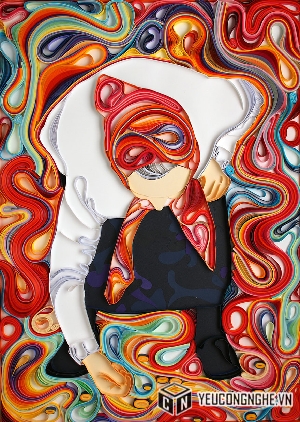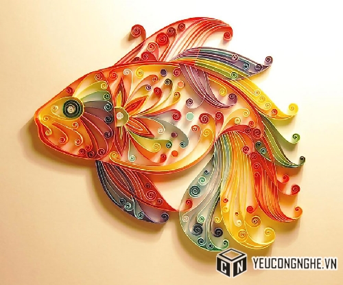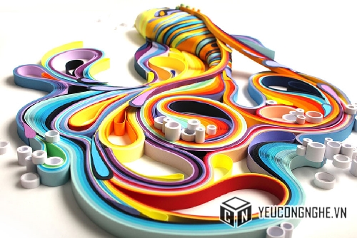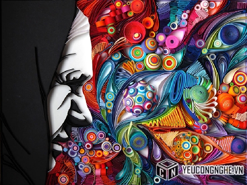 Cách làm đó tạo nên những đường nét chủ đạo của bức tranh, đồng thời rộng của dải giấy cuộn tạo nên chiều sâu mà những tác phẩm 2D không có được.