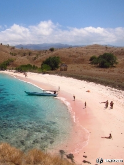 Có hai bãi biển màu hồng ở Indonesia, một ở quần đảo Komodo và một ở Đông Lombok. Sở dĩ nơi này có tên như vậy thứ nhất nơi đây là do từng được sử dụng làm trụ sở chính của quân đội Nhật Bản, một số tàn tích vẫn còn tới hiện tại; thứ hai là sắc hồng của bãi cát. Được biết, màu hồng này là do vụn san hô hòa vào sắc trắng của cát biển tạo nên.