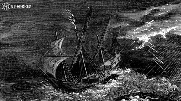Tranh mô tả Ngọn lửa Thánh Elmo trên đỉnh cột buồm một chiếc thuyền của Christopher Columbus năm 1492.