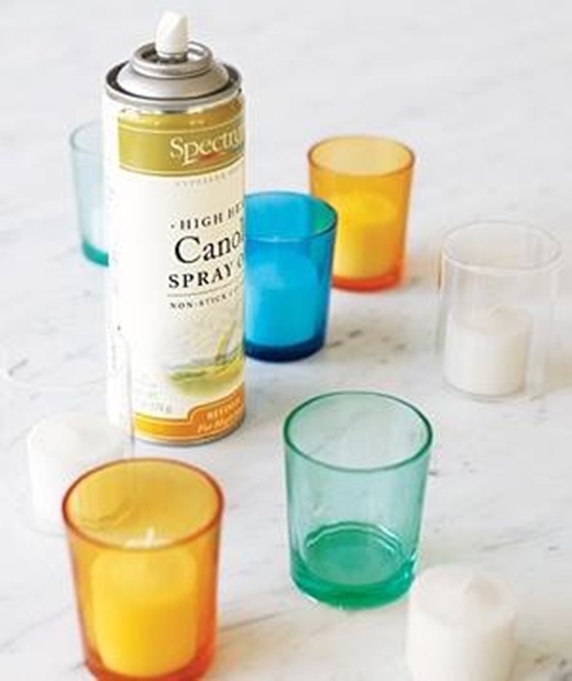 Xịt dung dịch chống dính vào trong chiếc ly nhỏ đựng nến để dễ dàng tháo nến ra sau khi đã dùng xong.