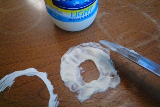 Bôi mayonaise để loại bỏ những vết bẩn khó coi do nước để lại trên đồ gỗ của bạn.
