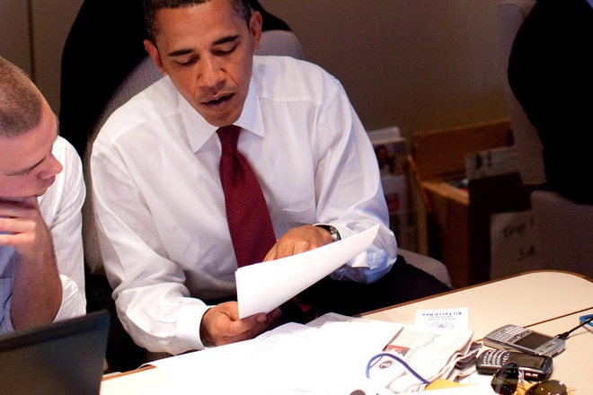 Trên chiếc bàn Kiên định (Resolute Desk) trong phòng Bầu Dục của Nhà Trắng, tổng thống Mỹ đặt chiếc máy tính bảng iPad 3 với màn hình Retina. Ông cho biết việc sử dụng các thiết bị công nghệ và duy trì liên lạc qua e-mail chính là cách giúp ông thoát khỏi sự tù túng của quyền lực và thêm cơ hội tiếp xúc với người dân. Trong khi đó, phát ngôn viên của Nhà Trắng cho hay địa chỉ e-mail cá nhân của Tổng thống chỉ được chia sẻ giới hạn trong một nhóm nhỏ cộng sự và bạn bè.