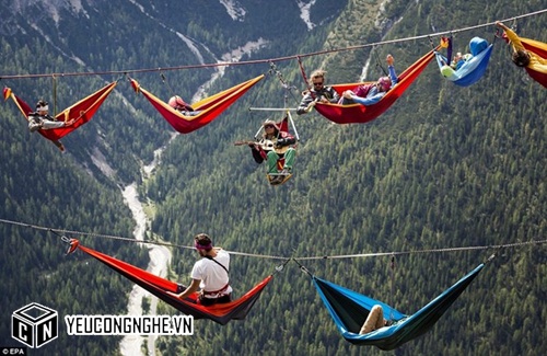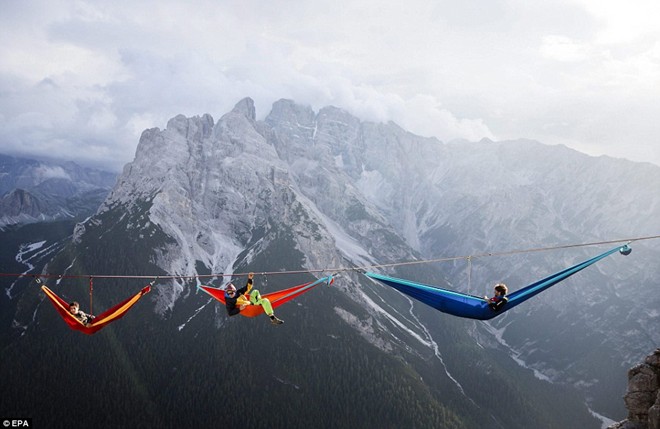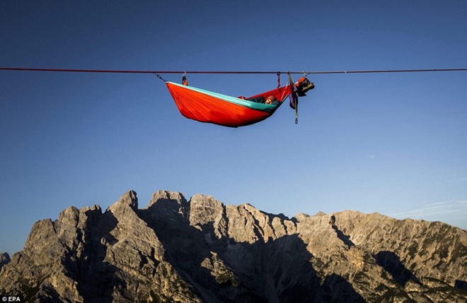 | Phần thưởng xứng đáng cho các vận động viên mạo hiểm là nằm trên võng và tận hưởng bầu không khí trong lành cũng như cảm giác mới lạ trên độ cao hàng nghìn mét. |