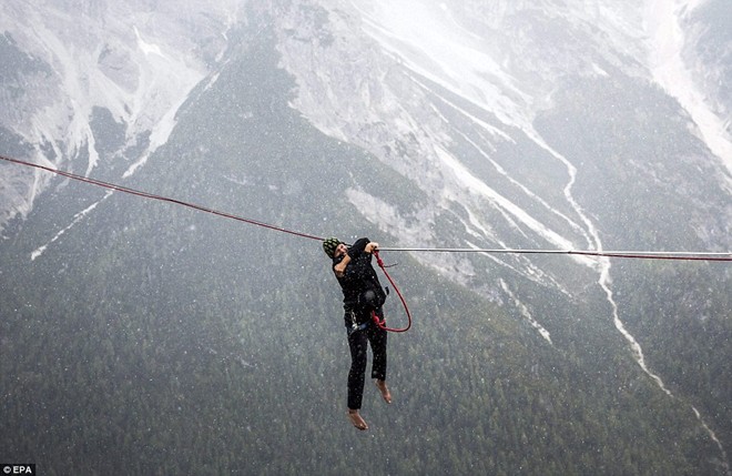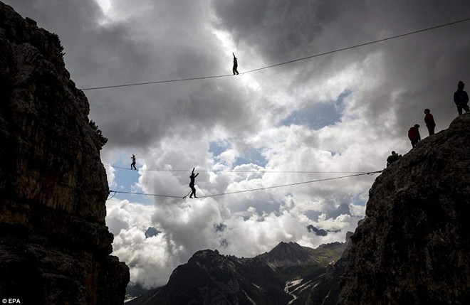 Hàng chục người ưa mạo hiểm đã đến khu vực phía Bắc dãy Alps, dãy núi cao nhất châu Âu, để tham dự hội nghị đi trên dây quốc tế.
