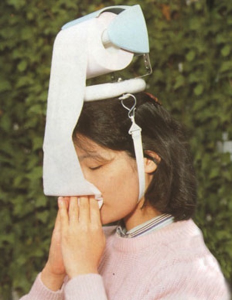 Nhà nghiên cứu phát minh chiếc khăn giấy trên đầu phục vụ riêng cho người bị sổ mũi. Tuy dụng cụ này rất tiện cho người bệnh nhưng khi ra phố sẽ thu hút người tham gia giao thông vì “lạ”