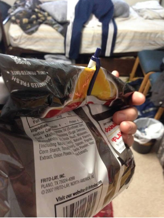 Hoặc có thể giữ nếp gói bim bim đang ăn dở. |