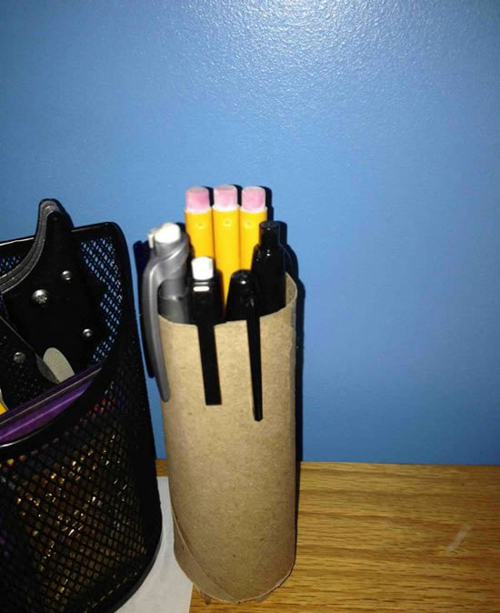 Lõi giấy vệ sinh có thể biến thành lọ cắm bút tiện dụng. |