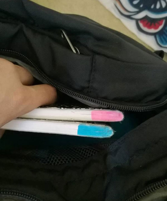 Nắp bút bi còn có công dụng là kẹp giữ sách nữa này. |