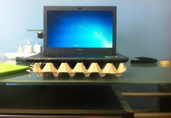 Khuôn bìa để trứng còn có tác dụng tránh nóng cho laptop. |