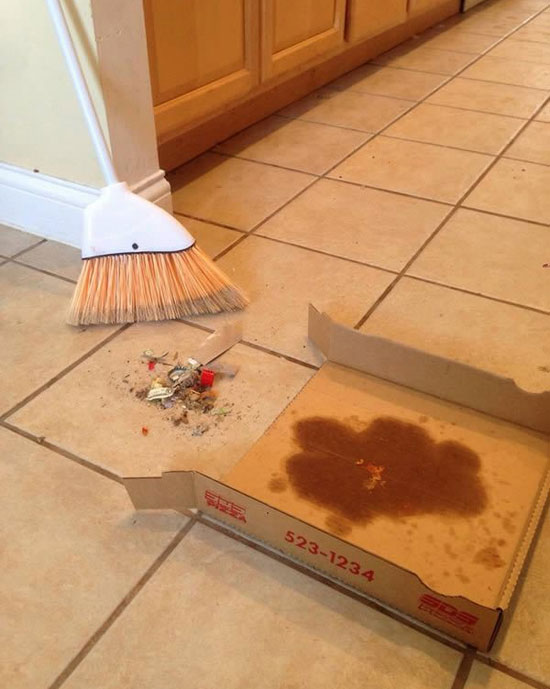Vỏ hộp pizza kết hợp làm xẻng luôn. |
