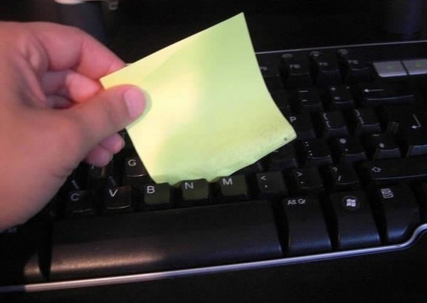 Chúng mình có thể lấy các vật bẩn trong các rãnh bàn phím bằng giấy note. |