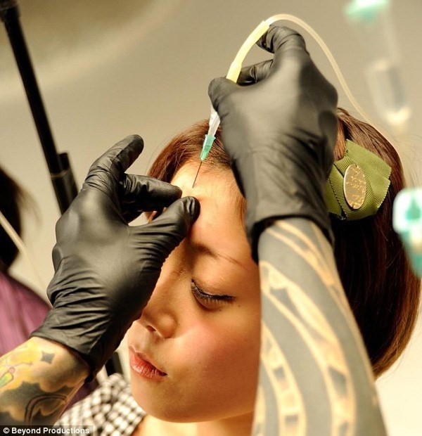 Các vị khách sẽ trải qua một cảm giác không mấy dễ chịu khi bị cắm thẳng một mũi tiêm lớn vào trán.